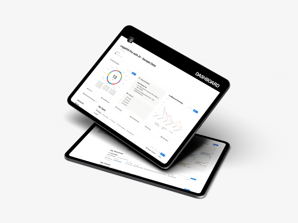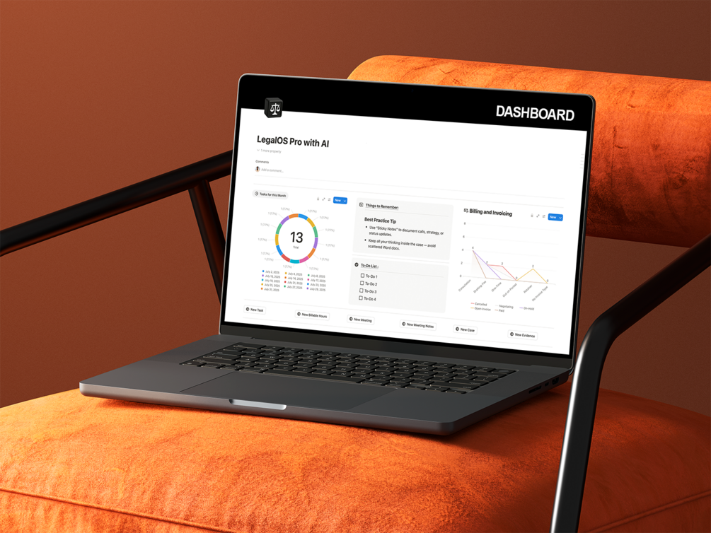 A complete legal workspace in Notion with billing logs, document tools, AI-ready sections, and automation views. Built for professionals who want full control, customization, and serious scale.