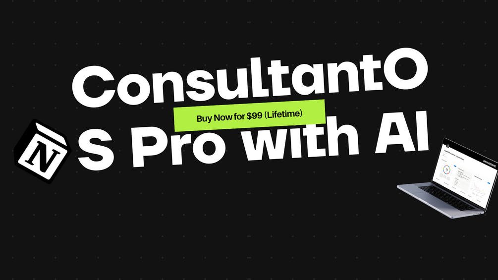 Instead of using spreadsheets for clients, Notion pages for projects, Google Docs for proposals, and random apps for notes — ConsultantOS Pro organizes your entire consulting workflow into one powerful AI-enabled system.